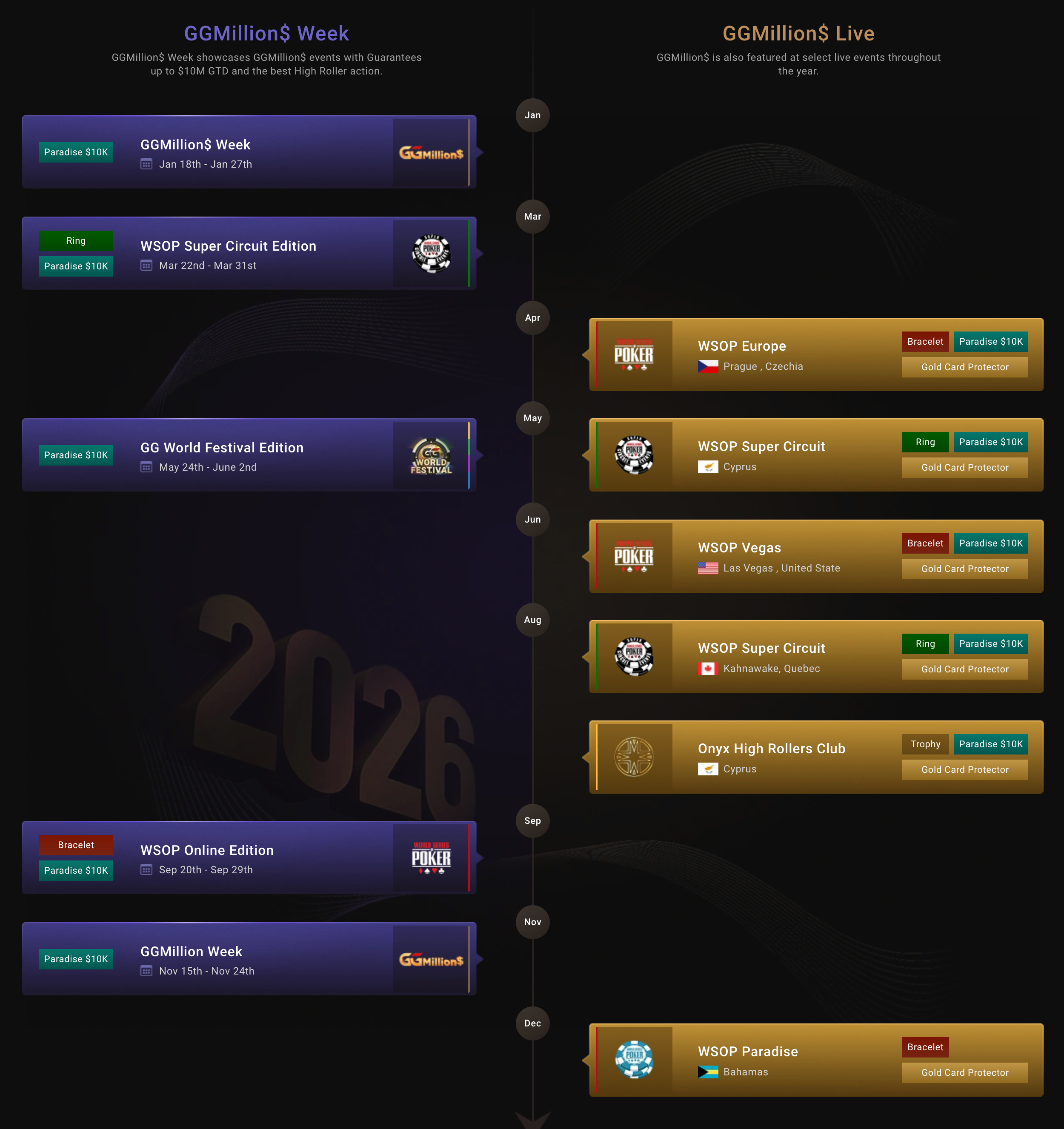 From GGMillion$ to WSOP Paradise — join the GGMillion$ journey in 2026.